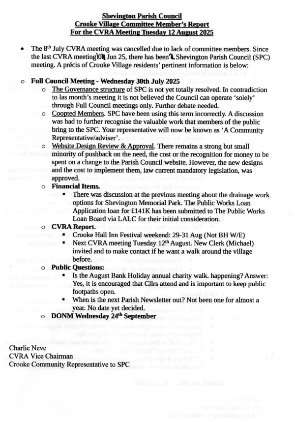 Crooke Village Residents Association Meeting Minutes for August 2025