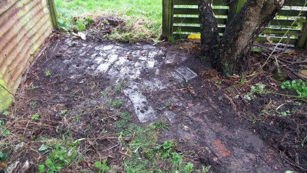 been mentioned that there may have been a brick footpath so with the aid of a shovel and spade, we did some exploritry work and found that there was indeed a