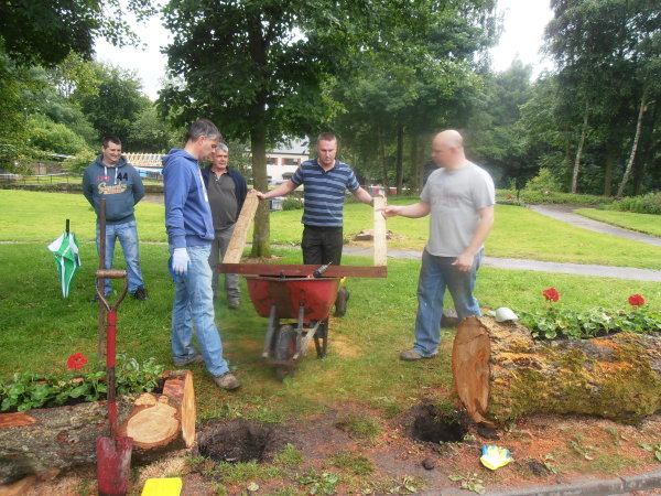 The following week, the work continued and more edging was completed. Later, two deliveries of woodchip arrived so a working party was gathered and we set too
